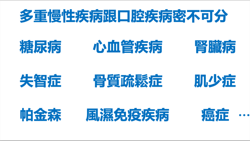- 口腔的問題也會加重慢性疾病的狀況