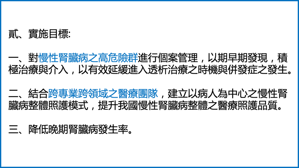 針對病情較嚴重的慢性腎臟病患者的照護計畫。
