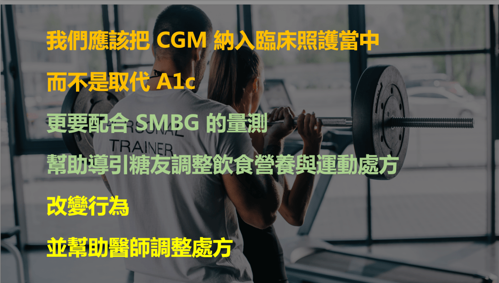 自我血糖監測,或是糖化血色素,都是很重要的監測方式,可以告訴我們當下的血糖值,以及近三個月的平均血糖狀況;也一直被當作控制血糖的重要指標,以及患者預後的警示燈;但是單頻單點的血糖以及平均值,無法帶給我們每個人每天、每分、每秒的血糖全貌,與高低起伏,以及血糖的穩定度與變異度。
