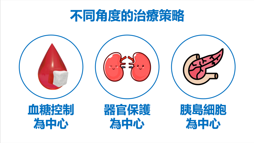 因此,血糖管理的早期積極達標,仍是糖尿病照護中最基本的一環,近年新興起的器官保護為中心的治療思維,應該要同時兼顧積極的血糖控制,與糖化血色素的達標與穩定,並注重體重的管理。
