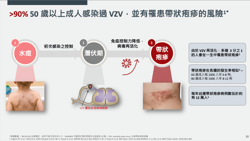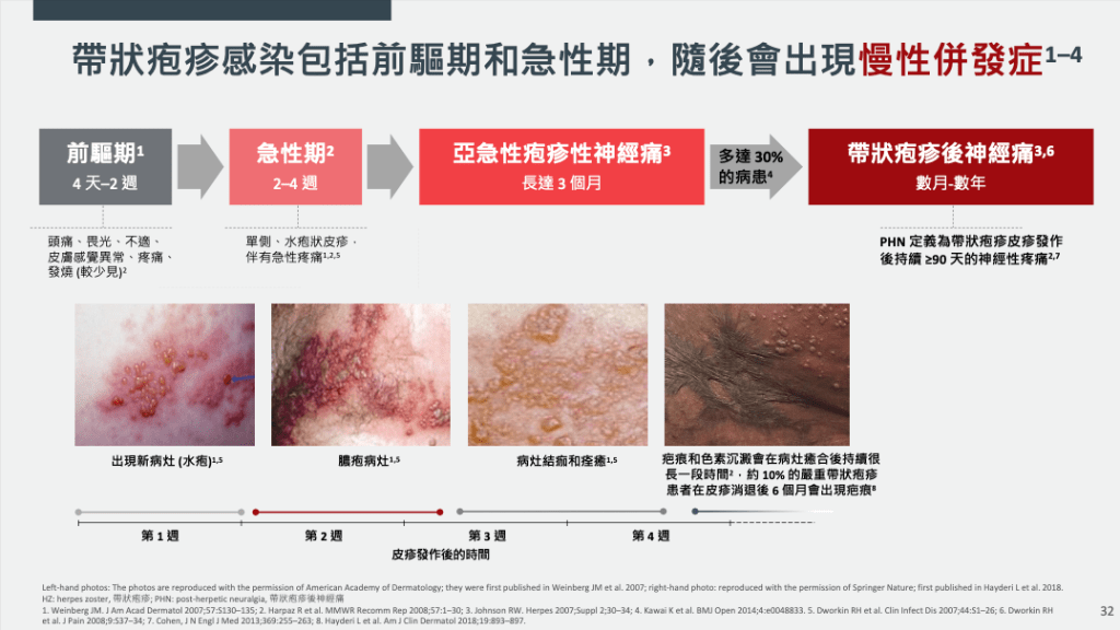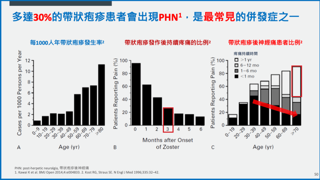 多達30%的患者,會有帶狀皰疹後神經痛的併發症,神經痛的程度,堪比生產的疼痛,甚至可能持續數年之久,嚴重影響生活品質。