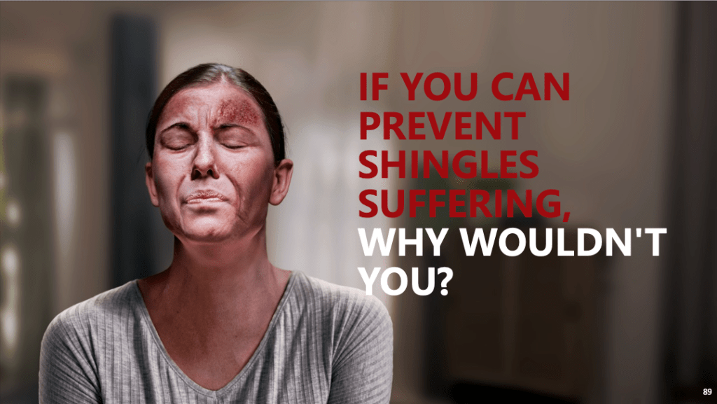 今天的分享從心出發,首先討論為什麼要接種帶狀皰疹疫苗,我們都清楚糖尿病患者與慢性病患者得到帶狀皰疹的風險,比一般人高將近兩倍,隨著年紀漸長,風險也隨之提升,這些患者一旦得到帶狀皰疹之後合併其他併發症,尤其是最常見的皰疹後神經痛的狀況也會比較嚴重,甚至持續時間也會比較久!