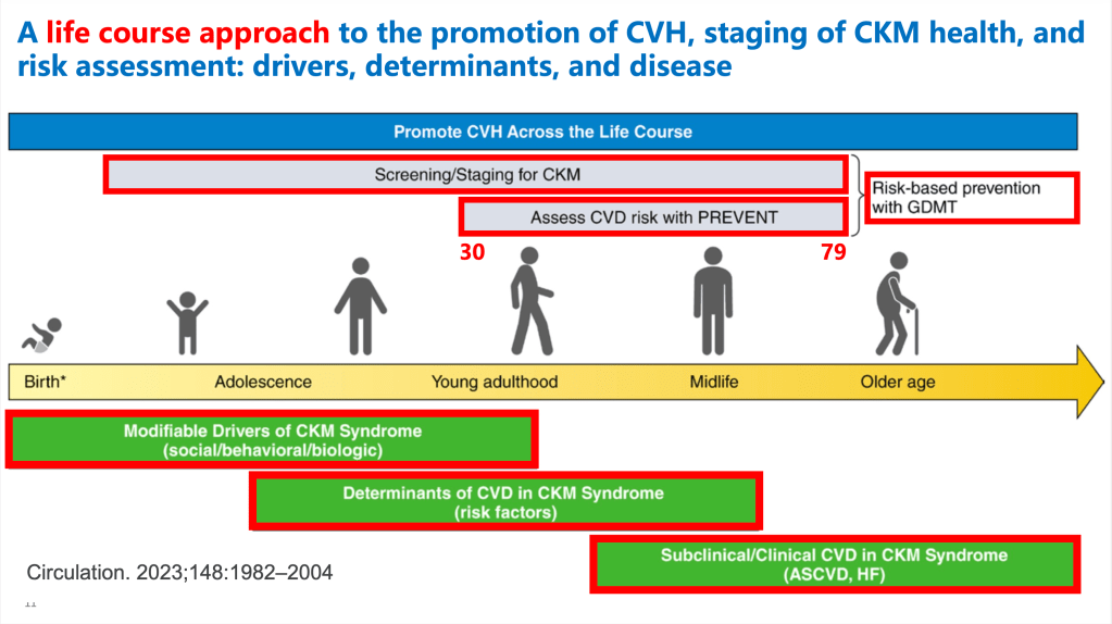 早期篩檢,積極介入,使用指引建議的治療(GDMT, guideline directed medical therapy)已預防心血管疾病的發生,以期促進心血管的健康(CVH,cardiovascular health),減少心血管疾病所造成的早逝(premature mortality)。