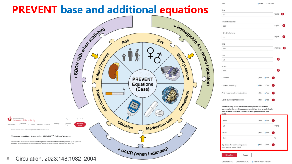 美國心臟學會推出全新的計算公式(PREVENT calculator),納入計算的危險因子,更符合近年來,共病表現組合的變化與趨勢,得到的風險也更精準。